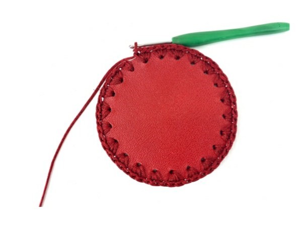 Inserir a base superior de couro e costurar com agulha como mostrado na foto.